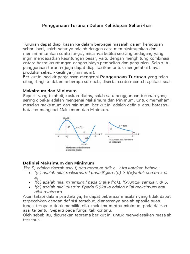 Contoh Aplikasi Turunan Dalam Kehidupan Sehari Hari Bagikan Contoh