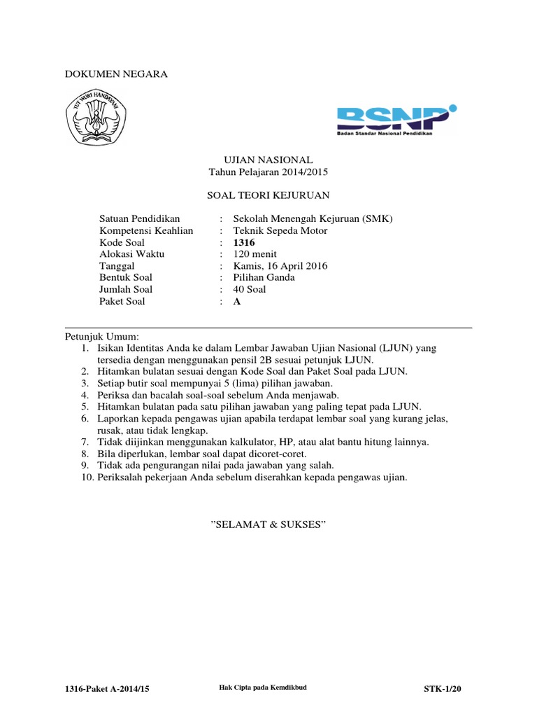 Kumpulan soal teknik sepeda motor. Latihan Soal Ujian Sekolah Teori Kejuruan Teknik Pemesinan 2017. Simulasi Soal Teori Kejuruan Stk Teknik Sepeda Motor Tsm Smk Mak Tahun 20182019 Simulasi Soal Teori Kejuruan Stk Teknik Sepeda Motor Tsm Smk Mak Tahun 20182019. Silahkan anda gunakan tombol navigasi di bagian atas soal.