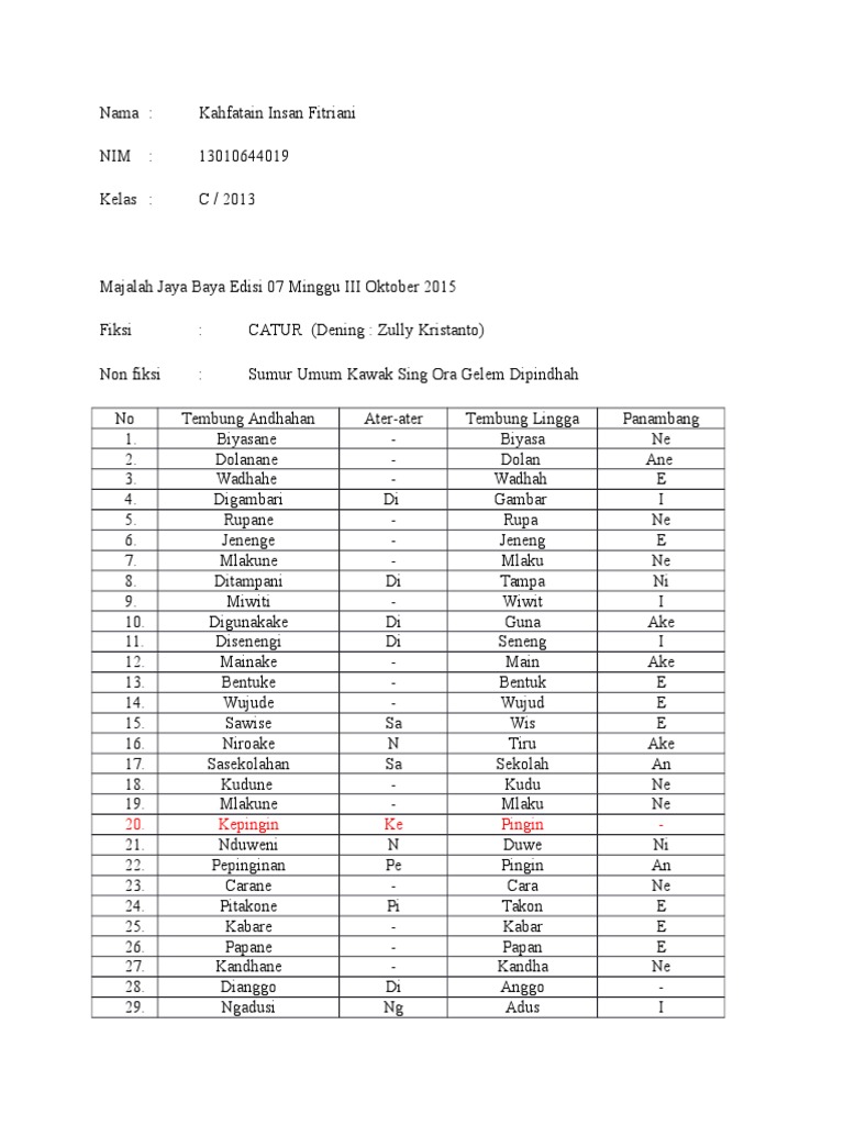 Apa Itu Tembung Lingga Dan Wod Serta Contohnya Jurnal Pp