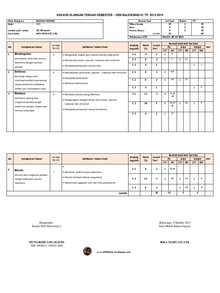 Bahasa Inggris Jumlah Soal. Kisi-Kisi PTSUTS Tematik Terpadu Bahasa Inggris Kelas 2 SD merupakan kerangka dasar yang dibuat untuk tindak lanjut dalam penyusunan soal ujian tengah semester. Maka kami akan memberikan contoh soal bahasa Inggris kelas 7.